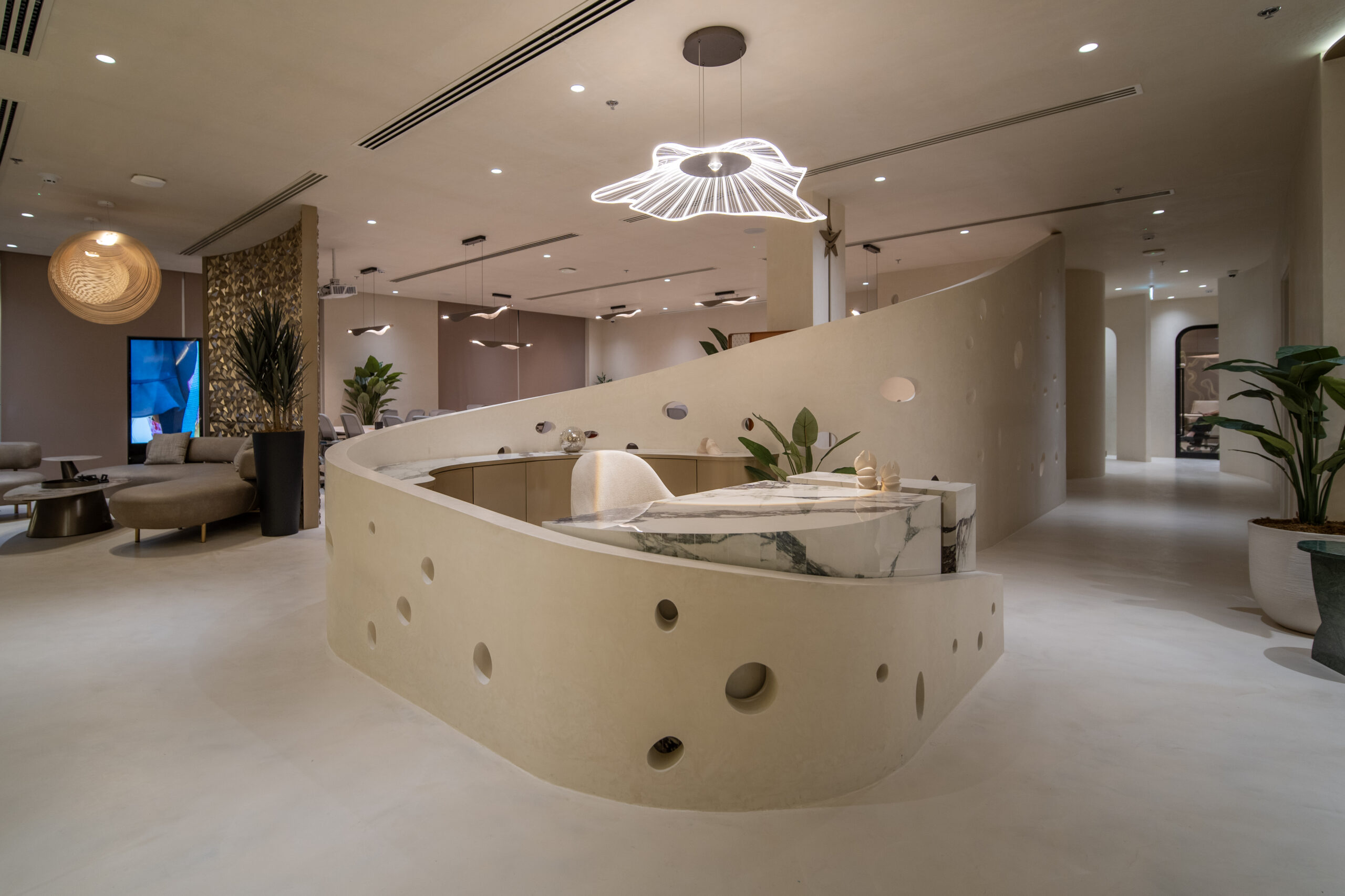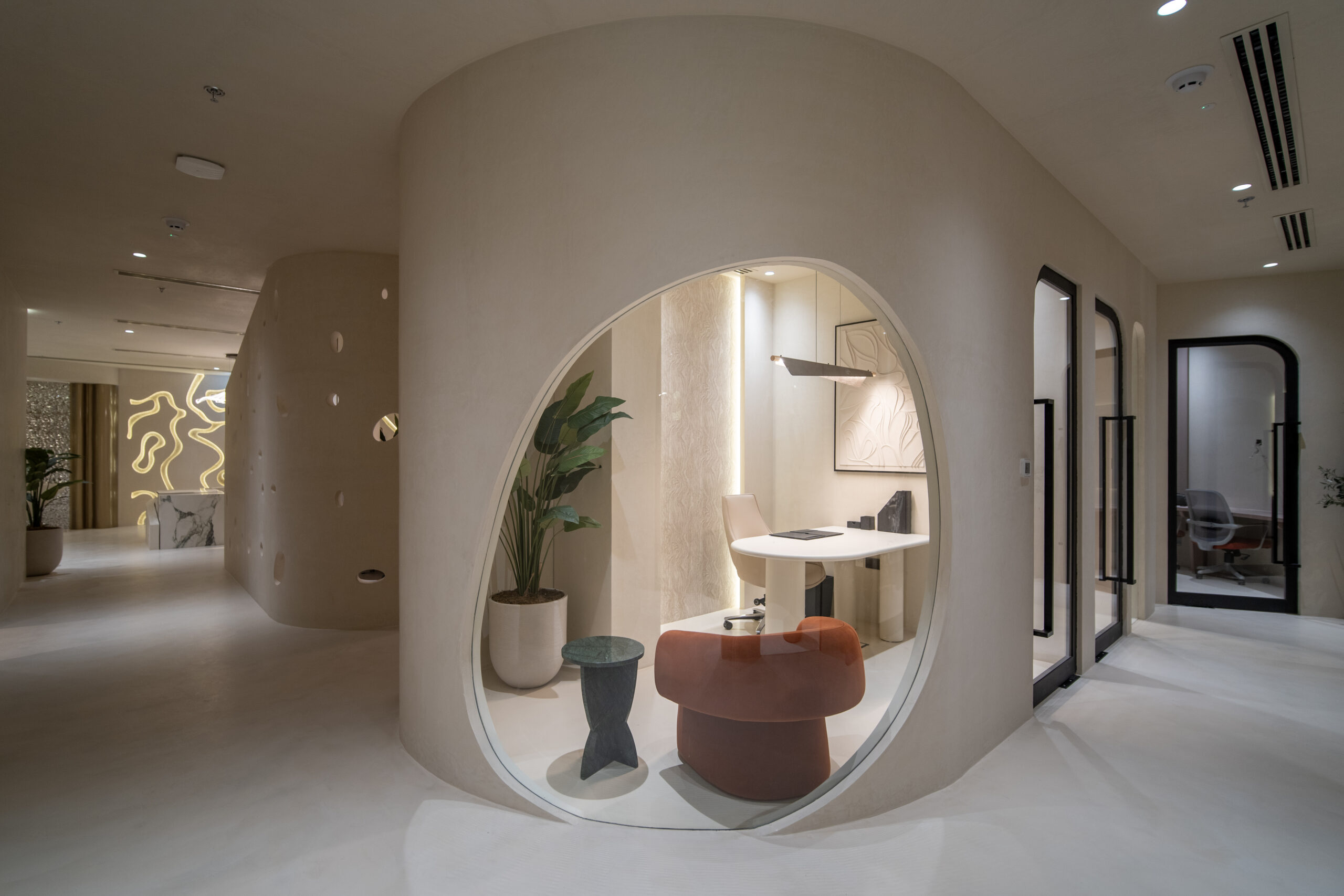 The architecture guides movement intuitively, allowing each zone to flow seamlessly into the next. Function and emotion are carefully balanced, creating spaces that support focused decision-making while elevating the everyday work experience.