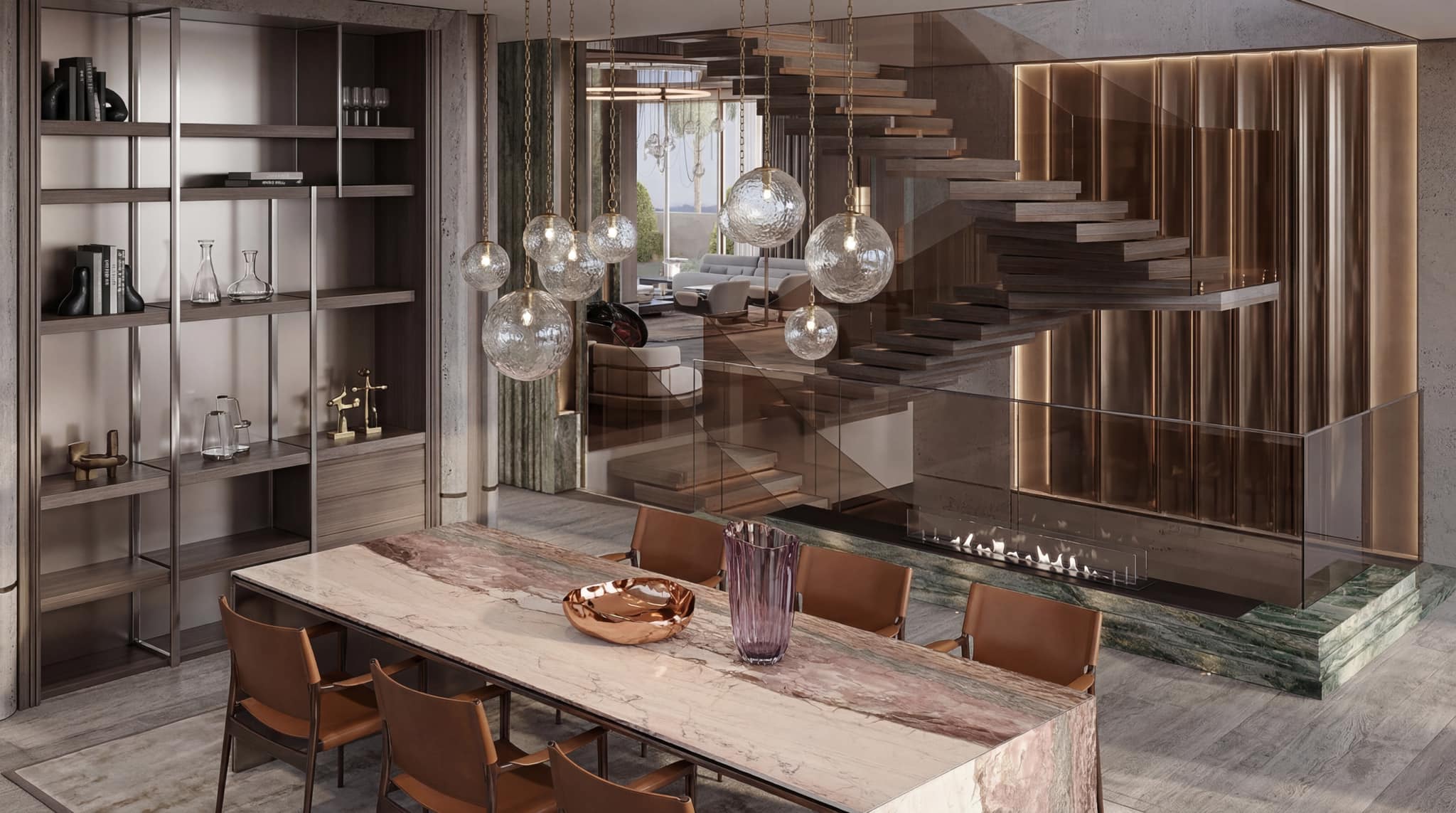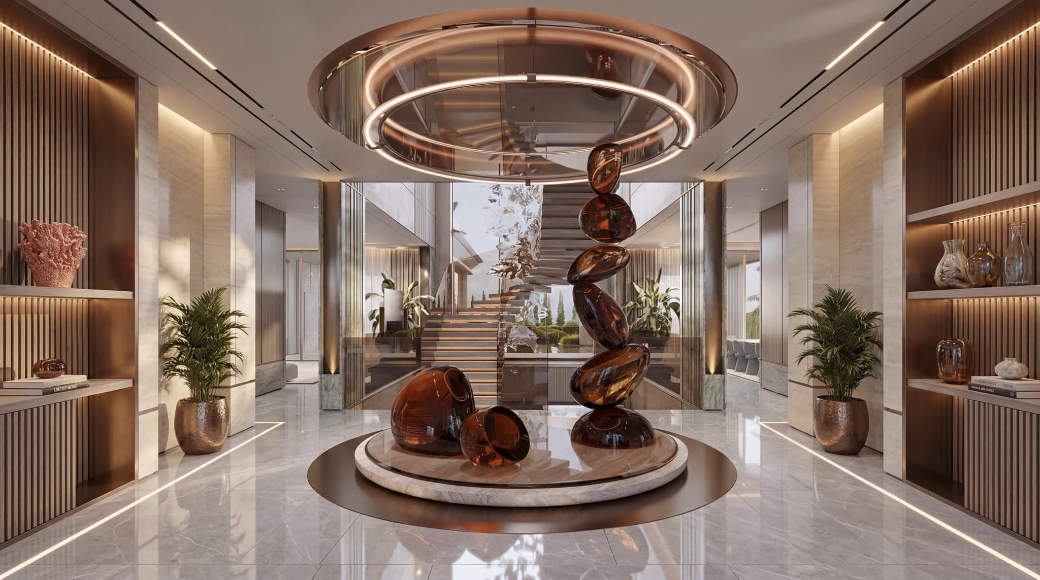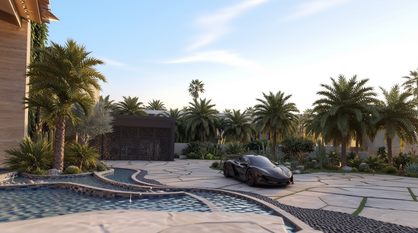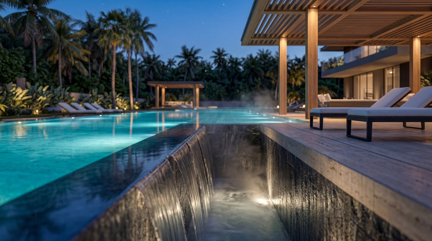 The interior experience is one of refined opulence, characterized by double-height volumes, sculptural staircases, and a palette of rare stones and warm metallics. Outside, the estate unfolds into a multi-sensory landscape featuring cascading infinity pools, tiered garden terraces, and immersive water features. Every element, from the textured feature walls to the custom lighting installations, is crafted to provide a serene sanctuary that balances grand-scale entertaining with intimate private living.