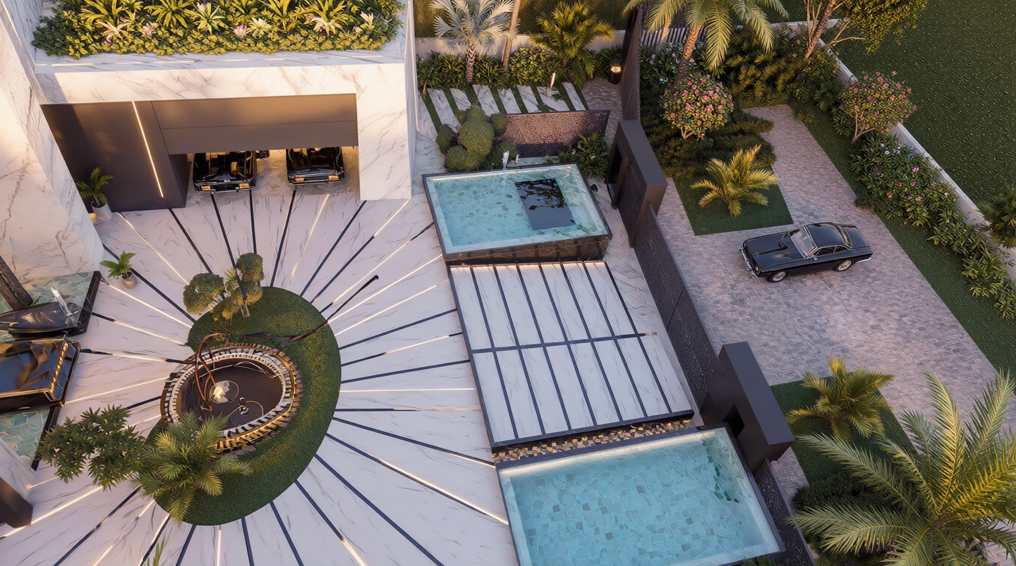 Setting a new benchmark for ultra-luxury developments, the estate integrates world-class recreation with cutting-edge technology. A private, professional-grade tennis court is nestled within the lush grounds, offering an exclusive space for wellness and sport. Most notably, the design anticipates the future of global travel with a dedicated on-site vertiport for eVTOL (Electric Vertical Take-off and Landing) aircraft, providing the homeowner with seamless, high-speed aerial connectivity directly from their private residence.